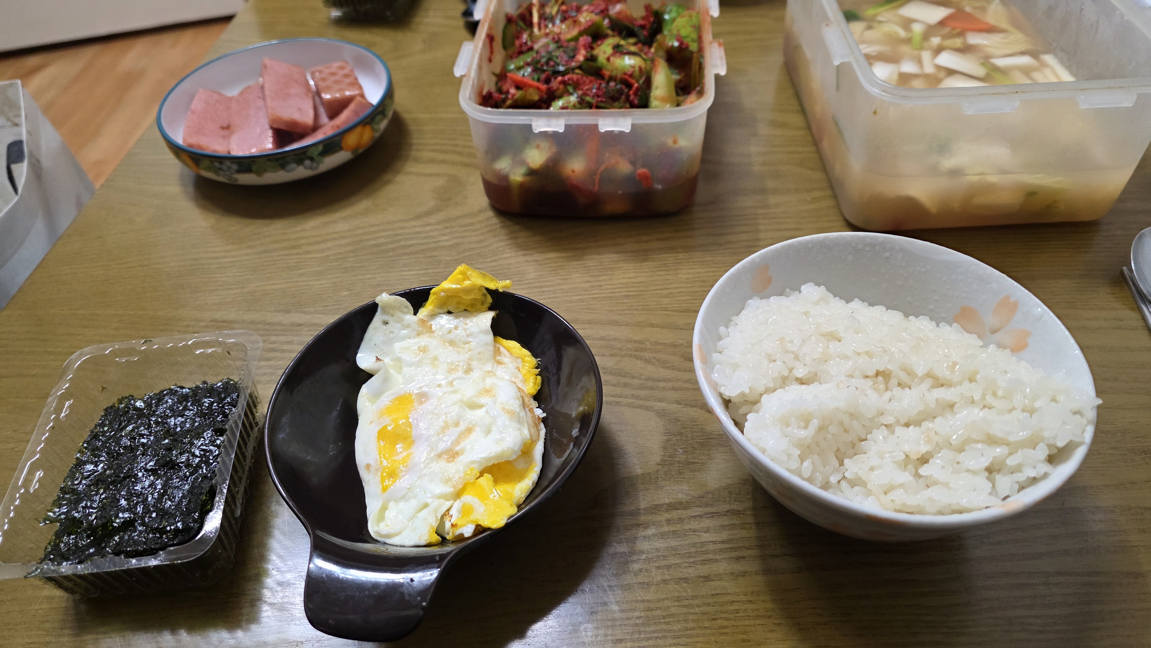 | 19:30 | 집 도착, 아버지와 저녁 식사 🍳 (계란후라이, 김, 밥, 김치, 햄, 국) |