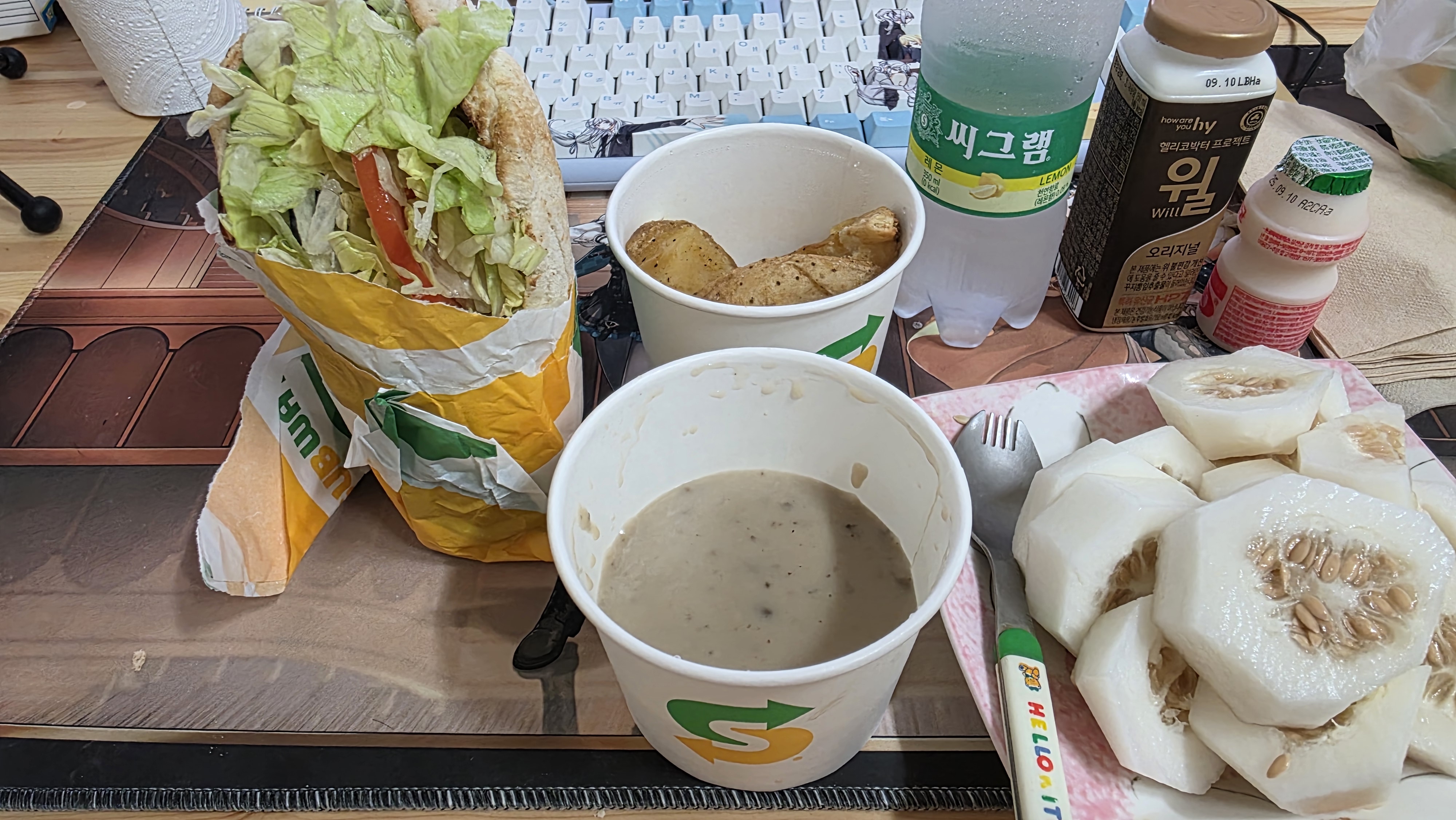 - 저녁 : 서브웨이 이탈리안 BMT, 웨지감자, 버섯스프, 씨그램 탄산수