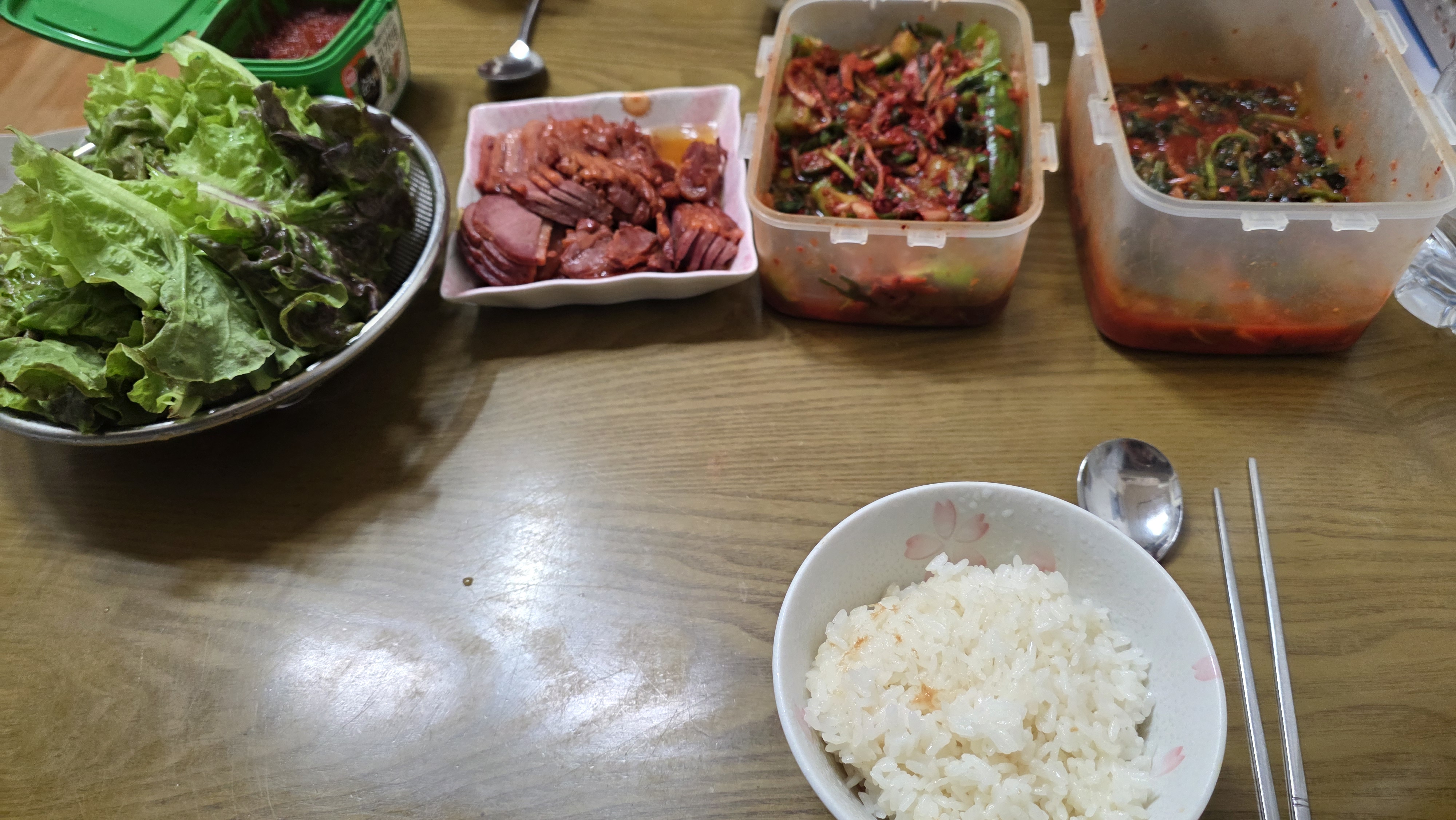 - 20:00 아버지와 저녁 식사(쌈채소 + 밥 + 반찬), 설거지 후 씻음