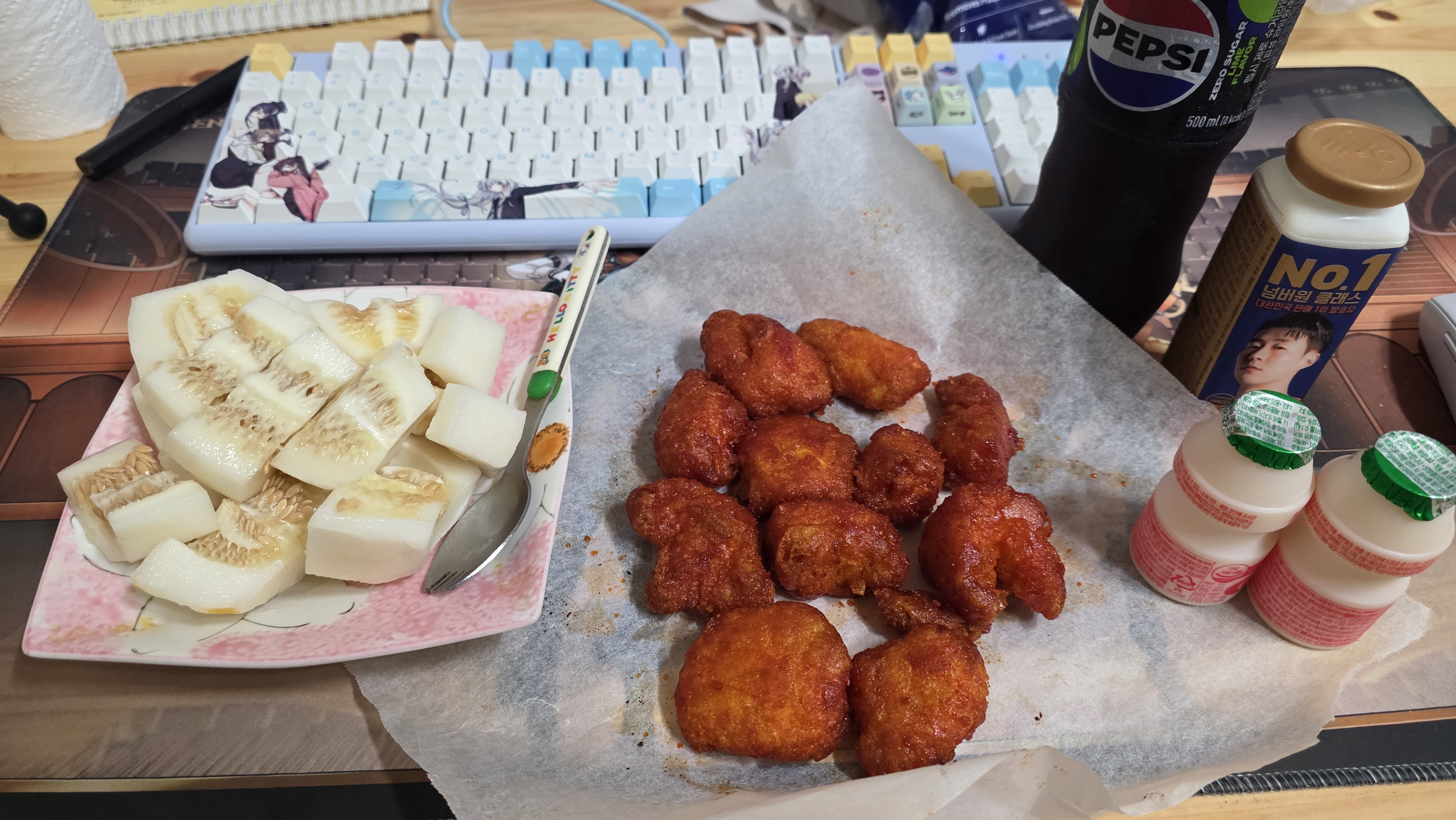 - 엊그제 산 소바바 치킨 + 펩시 제로 + 아버지가 깎아준 참외 + 윌 + 야쿠르트 2개