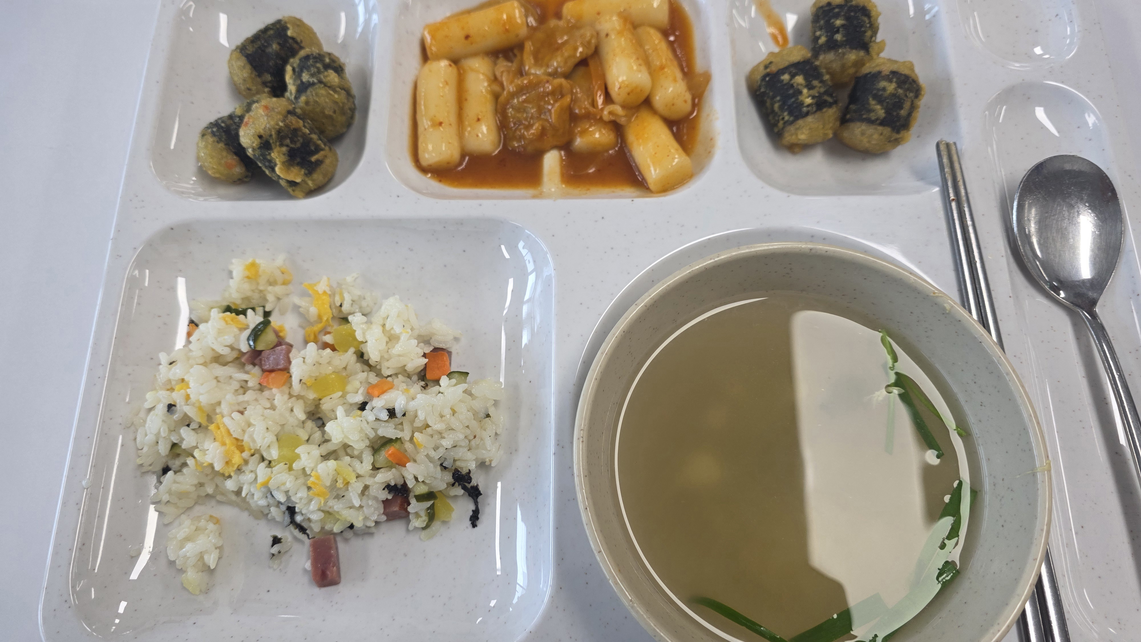 - 김밥볶음밥, 계란국, 김말이 7개, 떡볶이, 아맛나 아이스크림