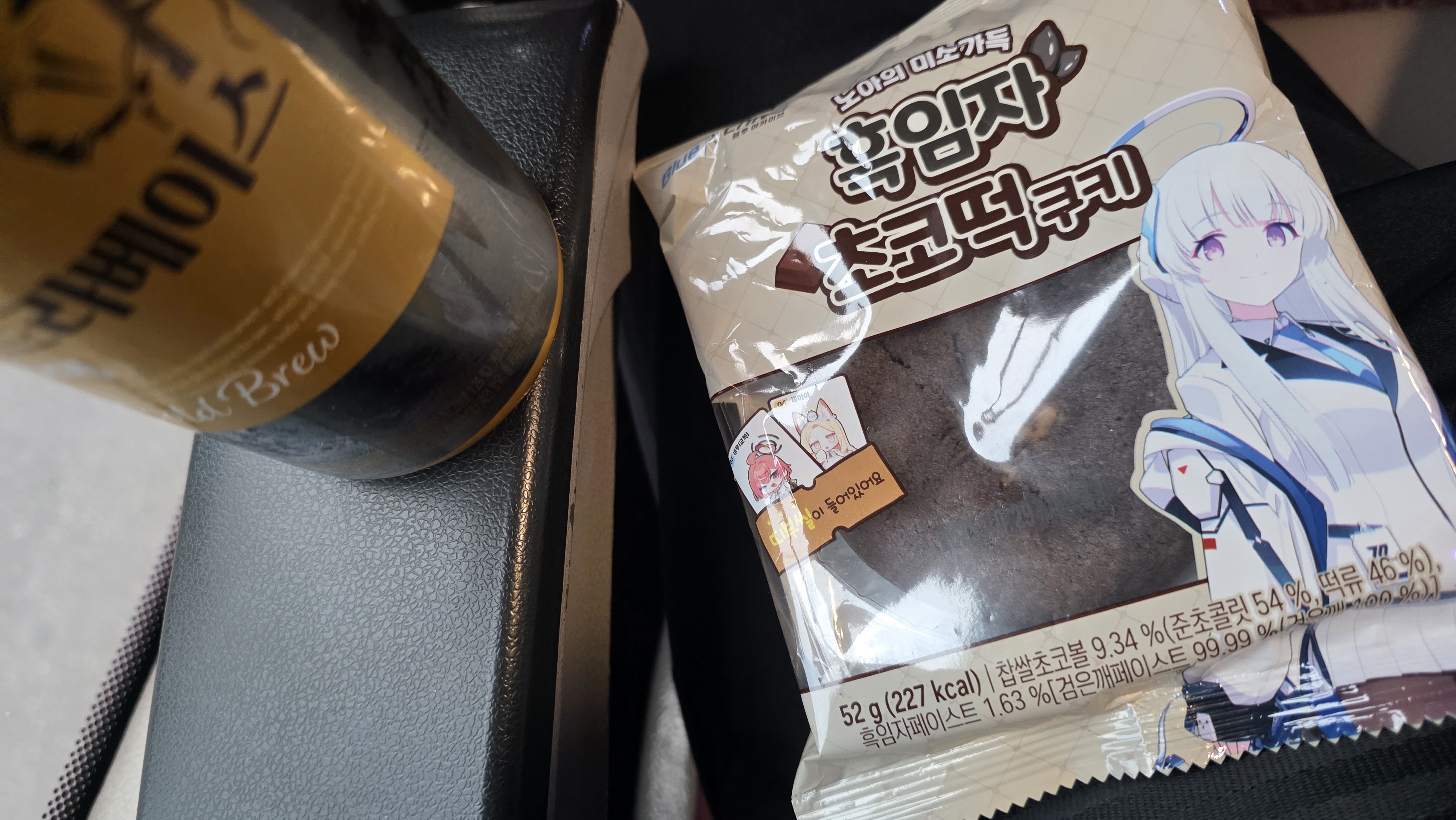 06:56 GS25에서 블루아카이브 빵(흑임자 초코떡쿠키) + 타이레놀, 아메리카노, 이클립스 레몬맛 구입 (9,300 원)