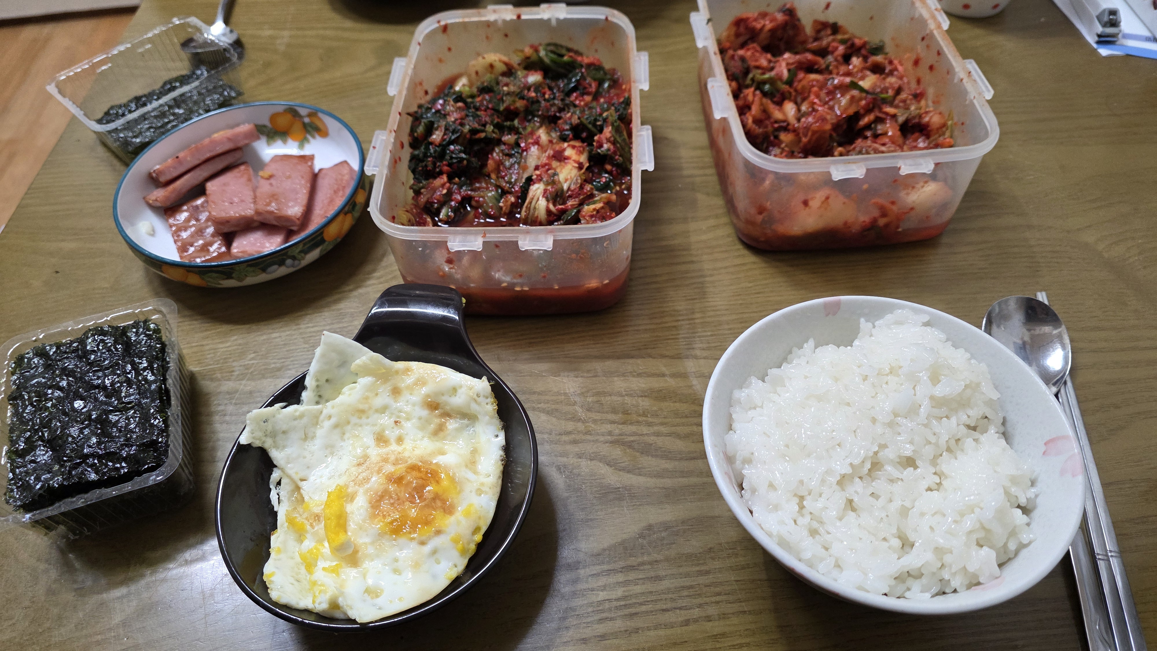 - 메뉴 : 밥, 김, 계란후라이, 햄, 김치