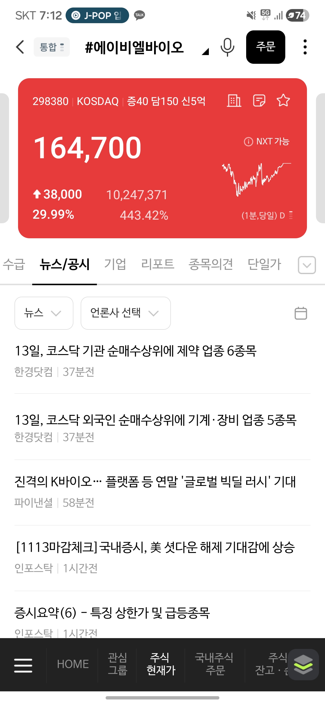 - 장 마감 직전 에이비엘바이오 30주 164,200원 매수