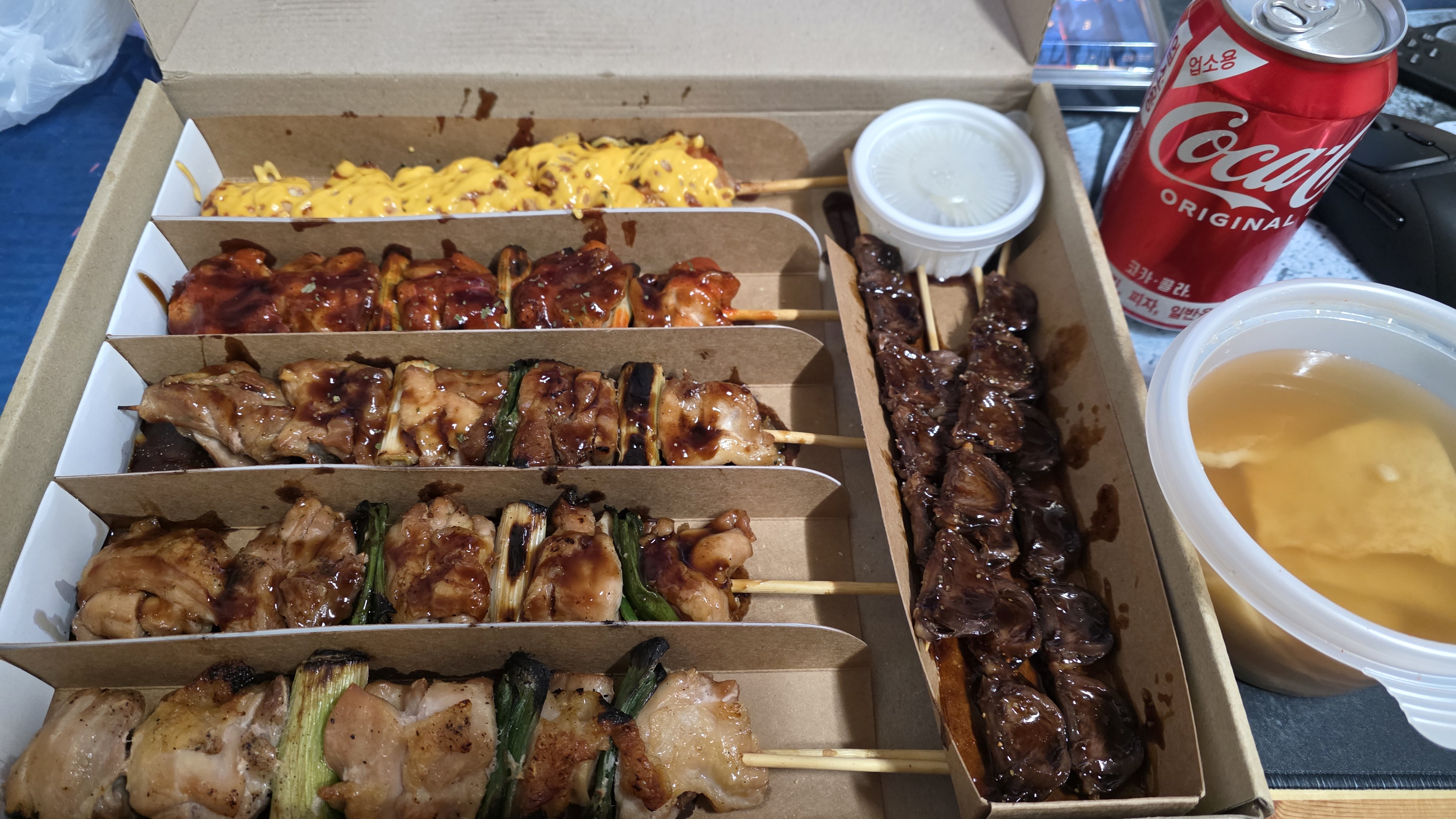 - 집 근처 도착하면서 닭꼬치 28,000원 주문
