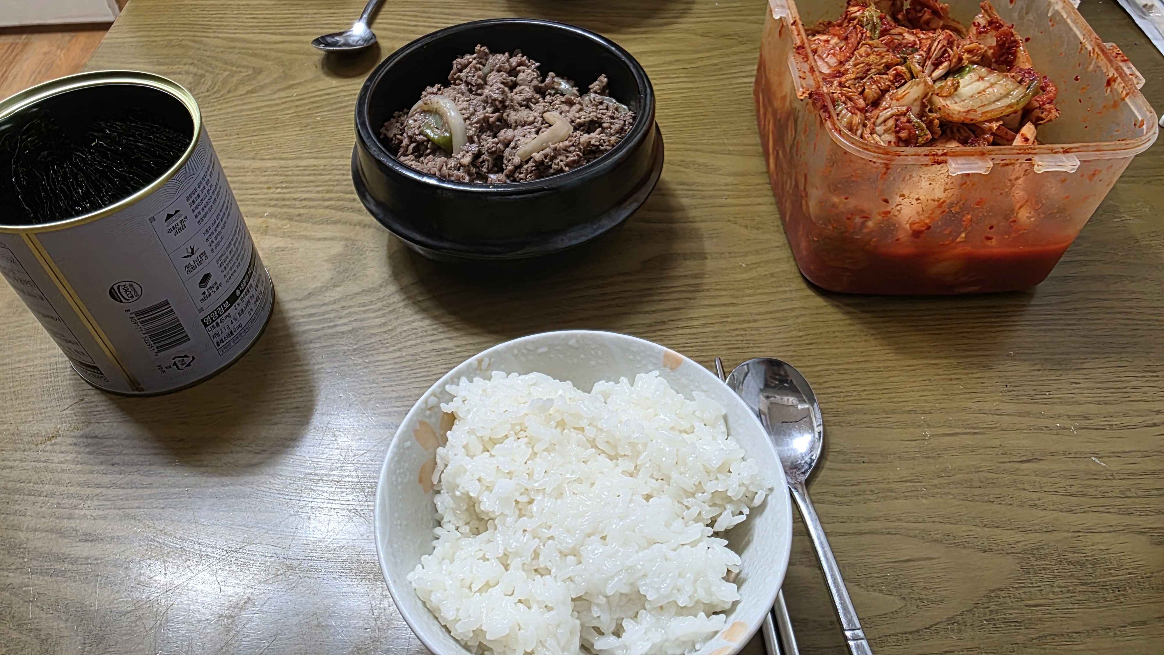 - 20:15 👉 아버지와 저녁 식사 (소불고기, 밥 1공기, 김, 김치) 및 설거지 완료.